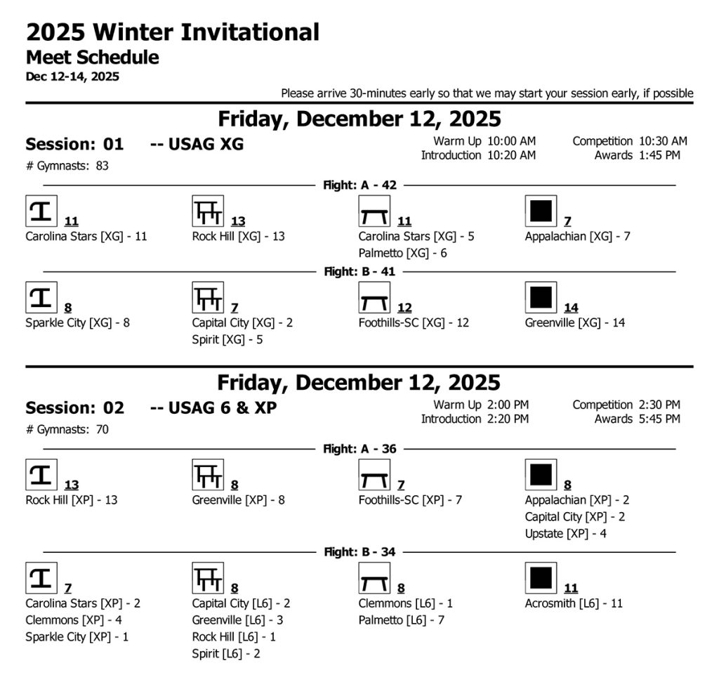Winter Invitational hotel block is only available through November 13th. Please share this link: 2024 Winter Invitational (hilton.com) with your gym families so that they can also take advantage of the special room rate.